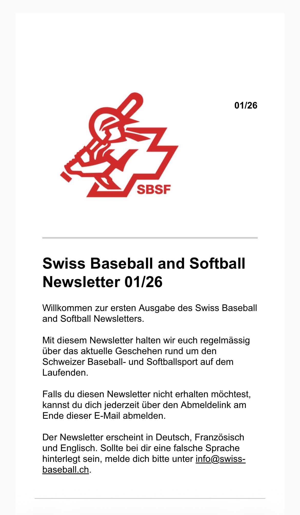 SBSF Newsletter 01/26